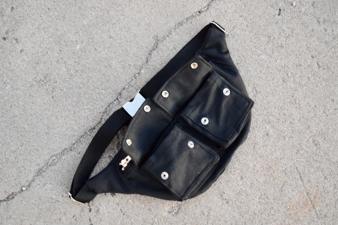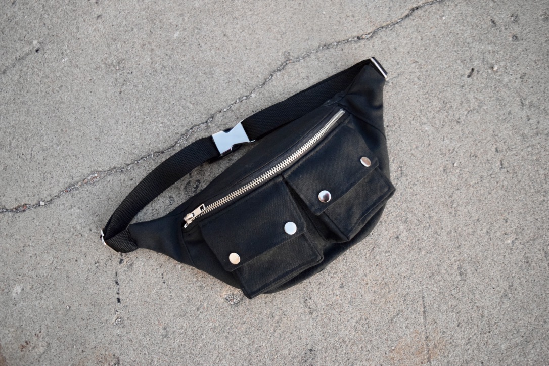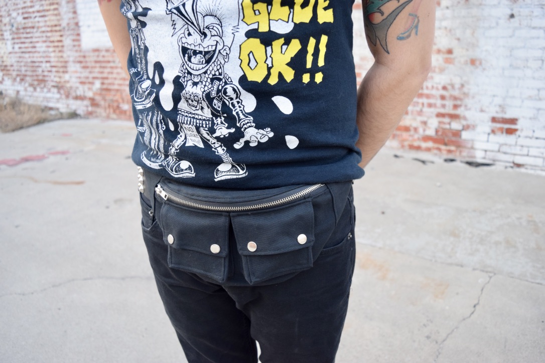 This super sturdy black fanny pack is perfect for keeping your things secure at festivals, while exercising, riding a bike, the toughest mosh pits or anywhere else you go. Made in the classic fanny pack shape, with added slick looking cargo pockets, this fanny pack is roomy enough to fit any size phone, keys, wallet, a couple beers or a water bottle!