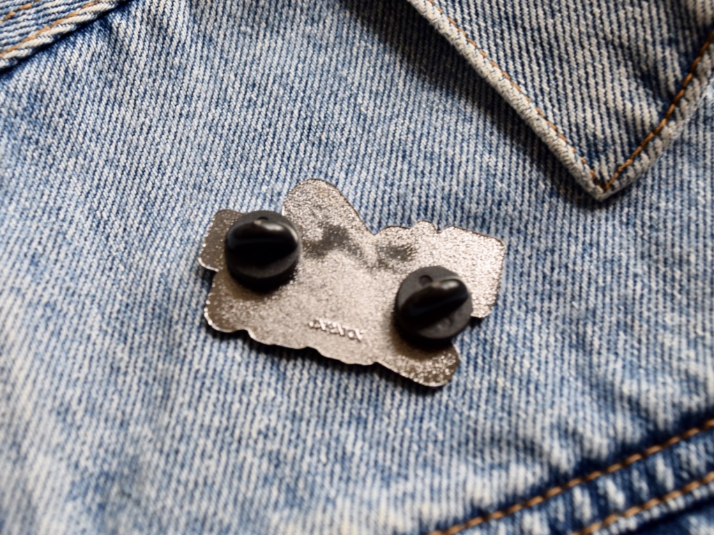 Do you like my store or logo and want to show it off to the world? Well now's your chance with this high quality metal and white enamel pin! It features two prongs for stability with rubber stoppers.
